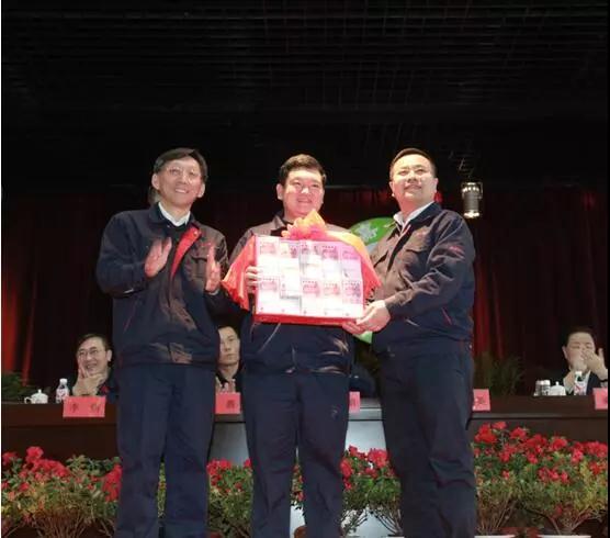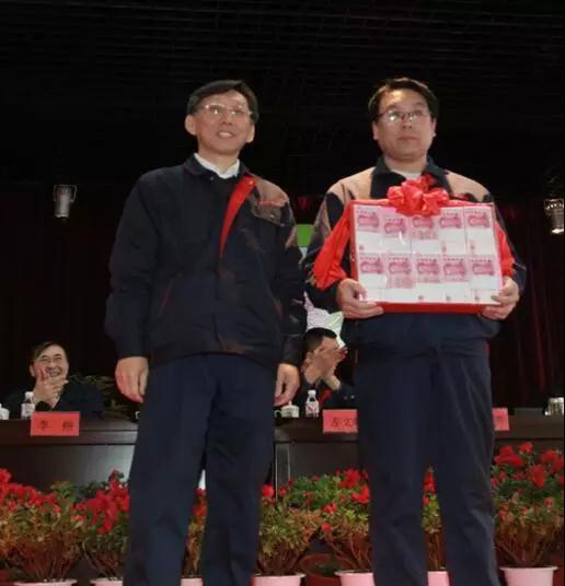 現(xiàn)場發(fā)放獎金,表彰創(chuàng)造這一指標(biāo)有功的干部和職工。