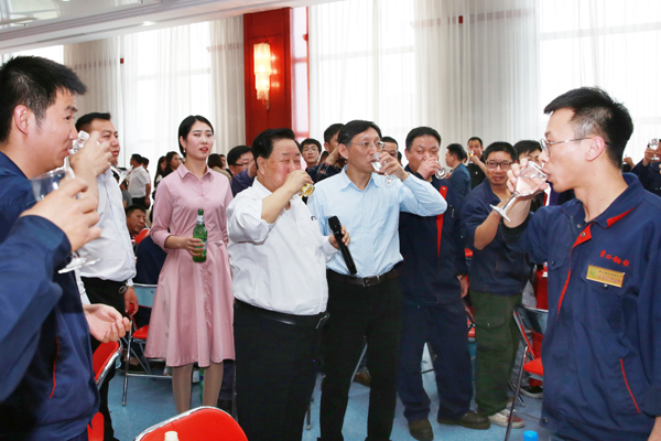 孫壽寬董事長(zhǎng)與現(xiàn)場(chǎng)全體員工共同舉杯祝愿嘉晨明天更美好