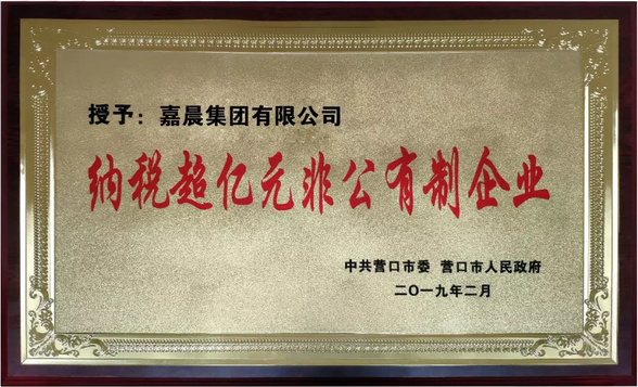 2018年,嘉晨集團堅持嚴(yán)格管理,牢固樹立安全環(huán)保發(fā)展理念,以創(chuàng)優(yōu)增效為中心,實現(xiàn)了跨越式發(fā)展,得到了市、區(qū)兩級政府機關(guān)的一致好評。我們一定珍惜榮譽,進一步增強責(zé)任感和使命感,奮發(fā)進取,真抓實干,為營口地區(qū)經(jīng)濟發(fā)展和社會進步做出新貢獻(xiàn)!