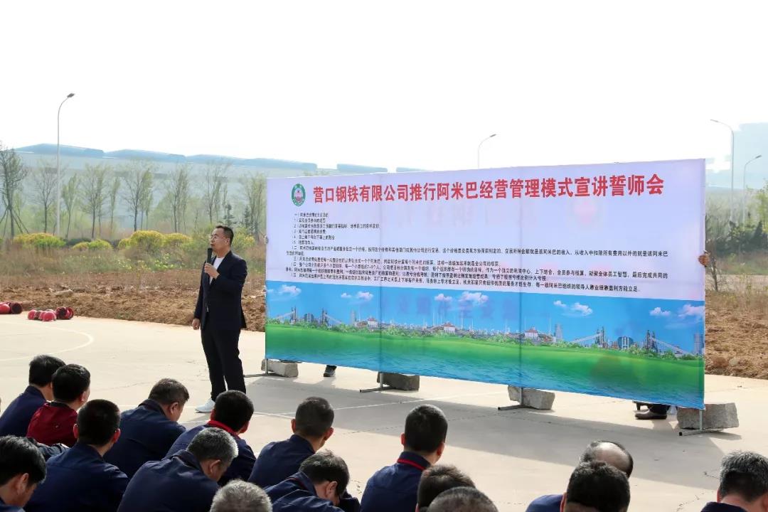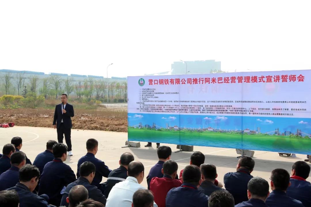 2019年5月3日下午,營鋼公司舉行推行阿米巴經(jīng)營管理模式宣講誓師大會,集團總裁孫朝英、集團副總經(jīng)理左文朝、營鋼公司副總經(jīng)理李朔等公司領(lǐng)導(dǎo),及各廠廠長、各部門領(lǐng)導(dǎo),阿米巴小組負責(zé)人等388人參加。